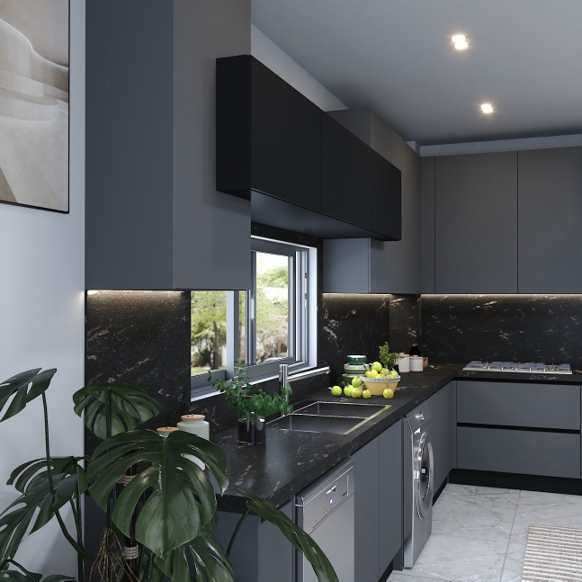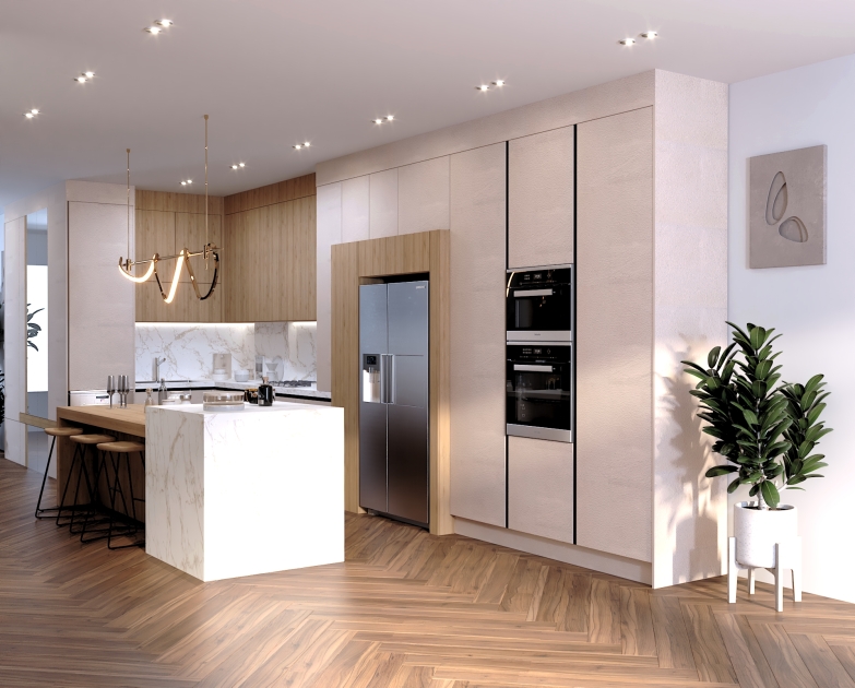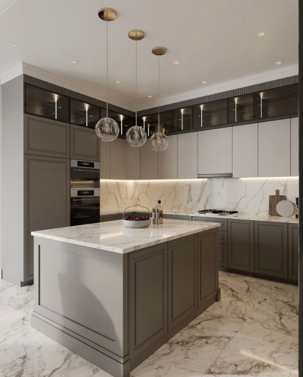 قرار دادن جزیره با ترکیب رنگ های کابینت و استفاده از سفحه SPL